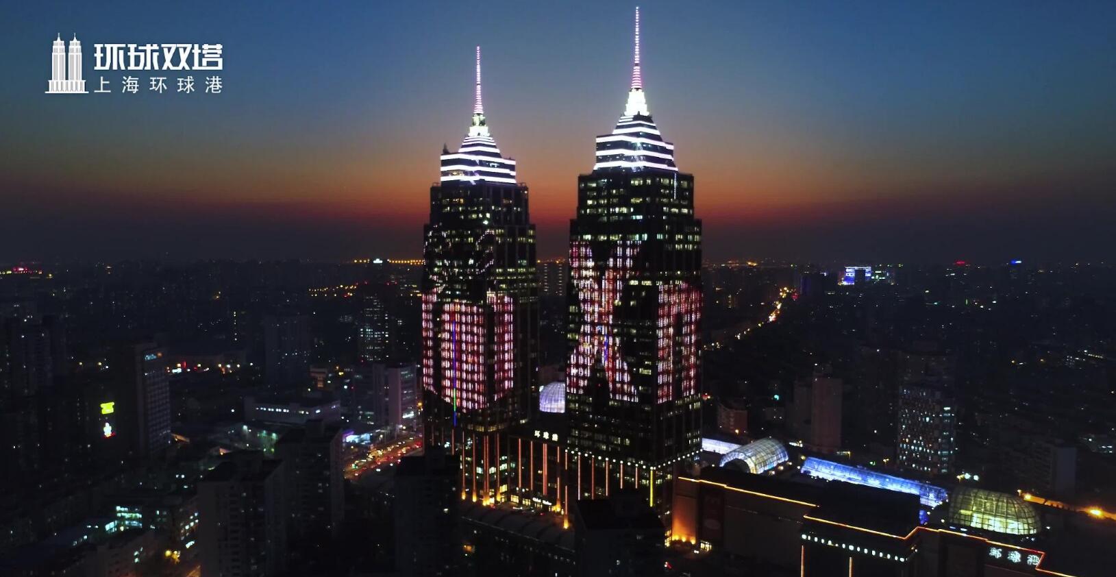 上海環球雙子塔燈光秀廣告