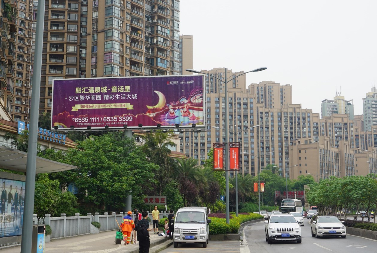 該廣告位位于沙坪壩區(qū)沙濱路,沙濱路是沙坪壩、渝中區(qū)、江北區(qū)三地往來的主要交通要道,該路段環(huán)境單純、地勢平坦、視野開闊;車流量大、廣告視覺沖擊力強、受眾目標廣泛、廣告信息發(fā)布效果突出,是各企業(yè)、事業(yè)單位提高知名度和推廣產品的首選之地。