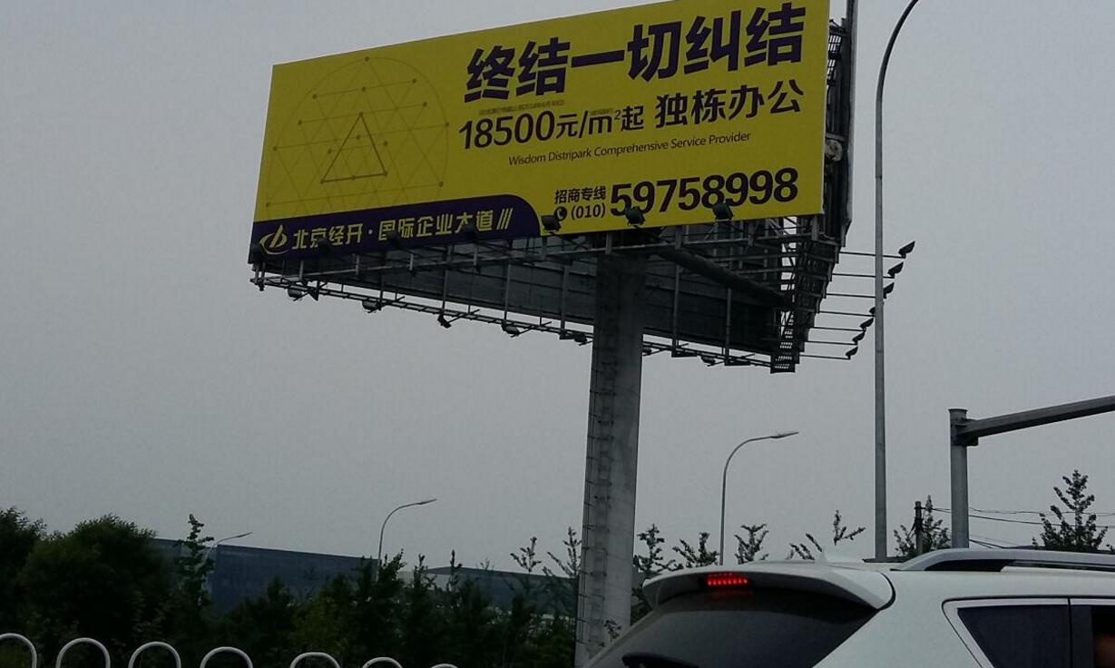 | 亦莊單立柱廣告 媒體位置:G2京津出入口亦莊開發(fā)區(qū)入口、亦城國際B座樓體 媒體形式:亦莊三面翻 媒體規(guī)格:30m*5m ? 27m*8m 媒體報價: 備注:開發(fā)區(qū)大企業(yè)形象宣傳(房地產(chǎn)除外) |