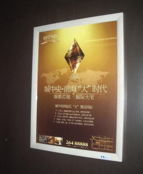 電梯框架廣告為靜態(tài)直至畫面, 24小時(shí)不間斷播出一個(gè)廣告畫面、由于電梯轎廂內(nèi)是封閉的環(huán)境、廣告到達(dá)率比較高、樓盤覆蓋一般社區(qū)為主、寫字樓為輔。
