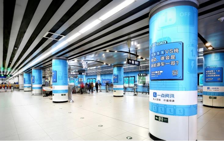 地鐵包柱廣告,是將廣告海報畫面包裹在地鐵等候廳的支撐柱上的廣告形式,這種廣告形式一般配合品牌專區(qū)廣告一同投放,也可以單獨售賣。
