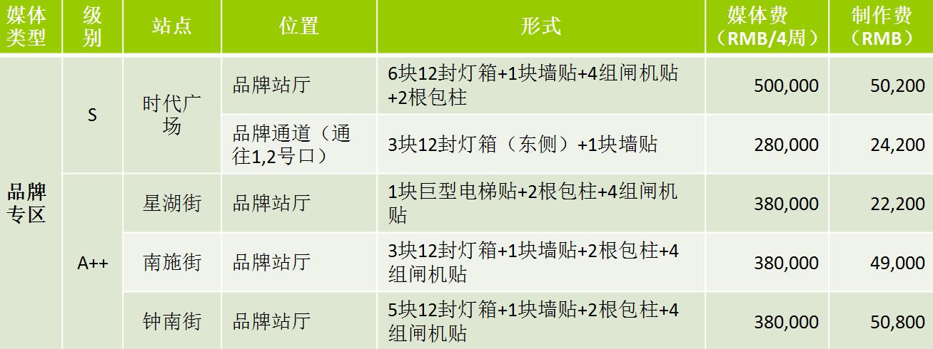 品牌站廳:3塊12封燈箱+8根包柱+5組閘機貼