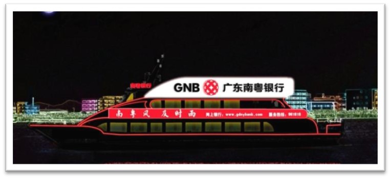 船體廣告多采用燈箱或者LED燈的形式,顯示在游船側面的醒目位置。