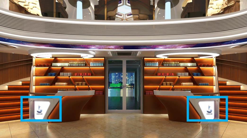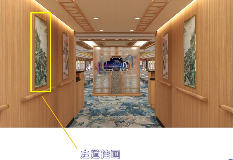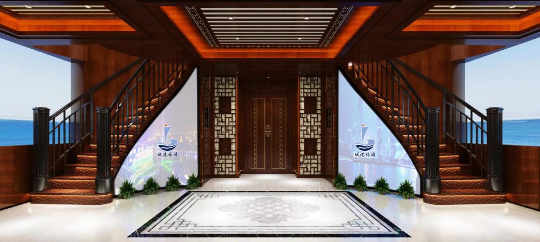 游船內部廣告位:樓梯通道區兩側分布2個異型廣告展示位