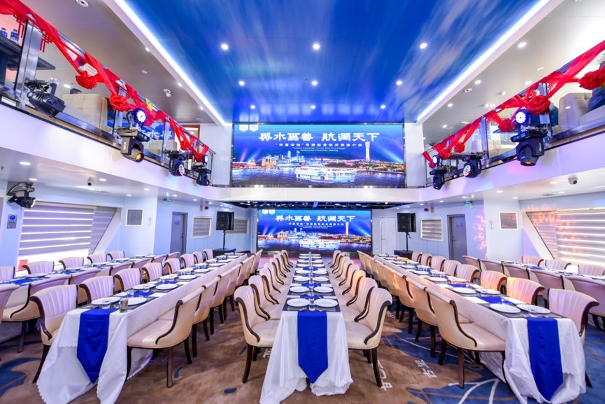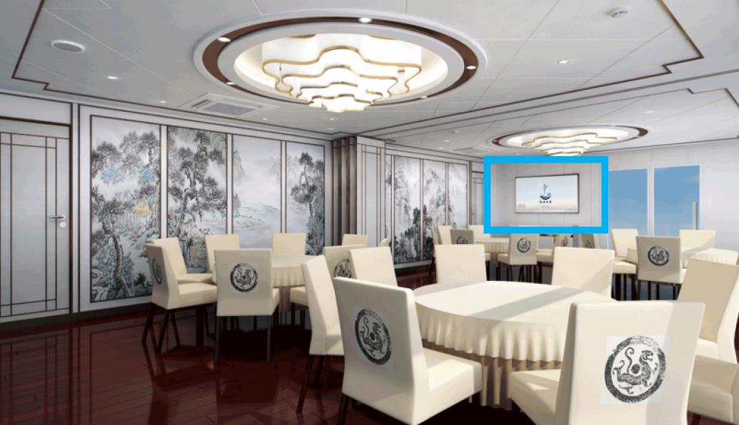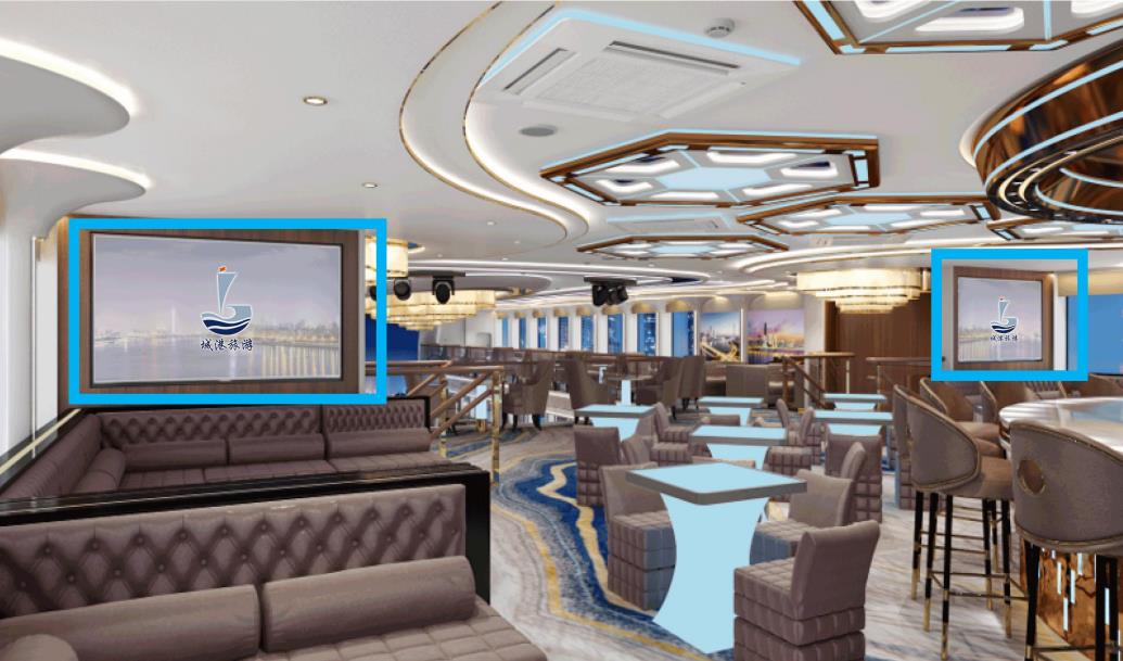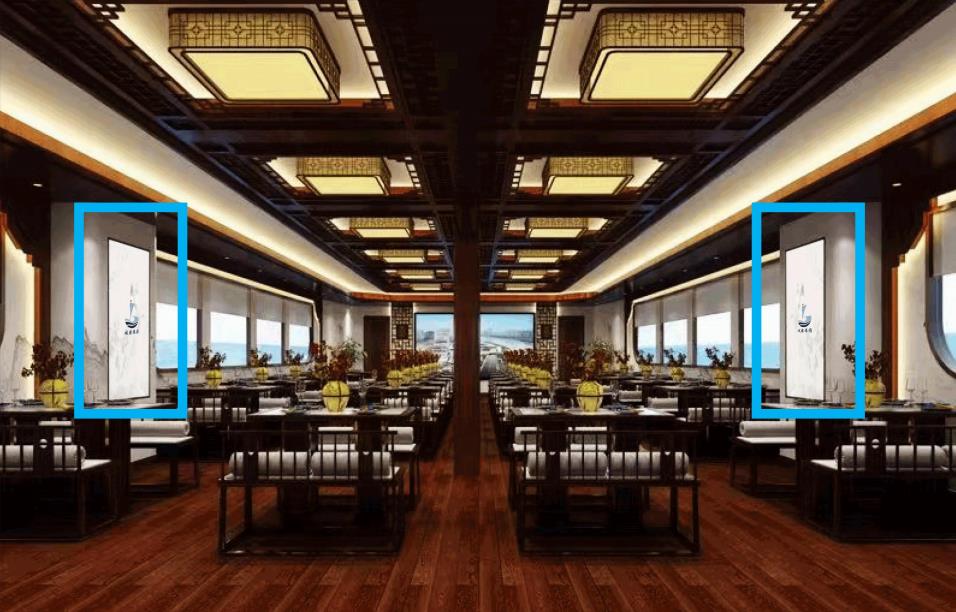 游船內部廣告位:坐席區兩側分布2個豎版廣告展示位