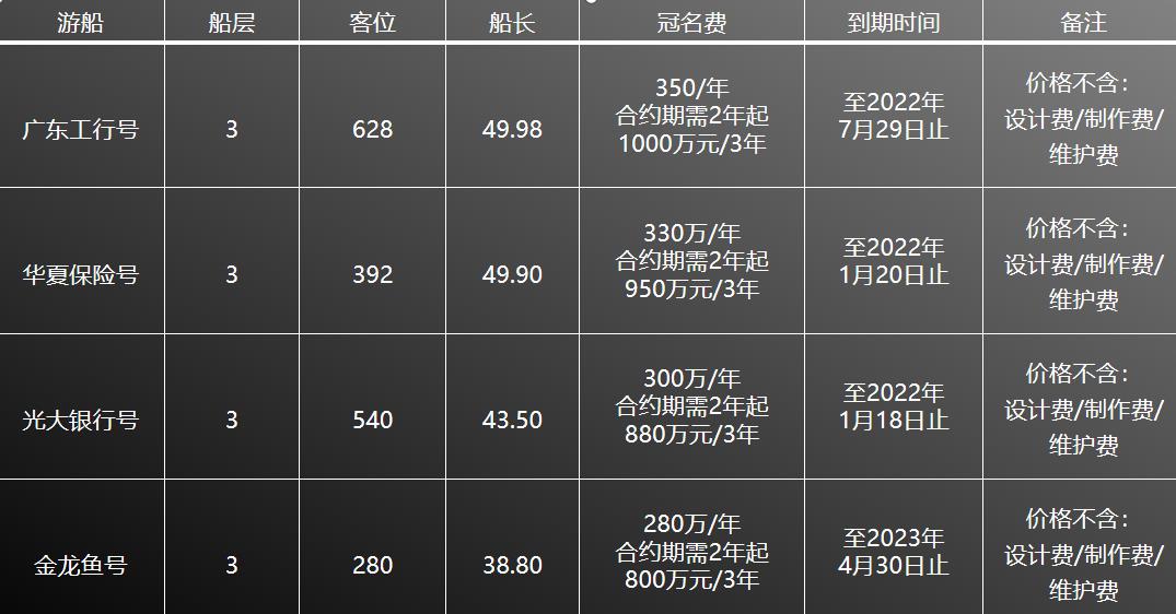 游船冠名報價