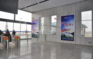 | 靈寶西高鐵站進出站通道廣告(bd) 位 置 進出站通道兩側 規 格 2.4米*1.2米=2.88平方米 數量 十六塊 |