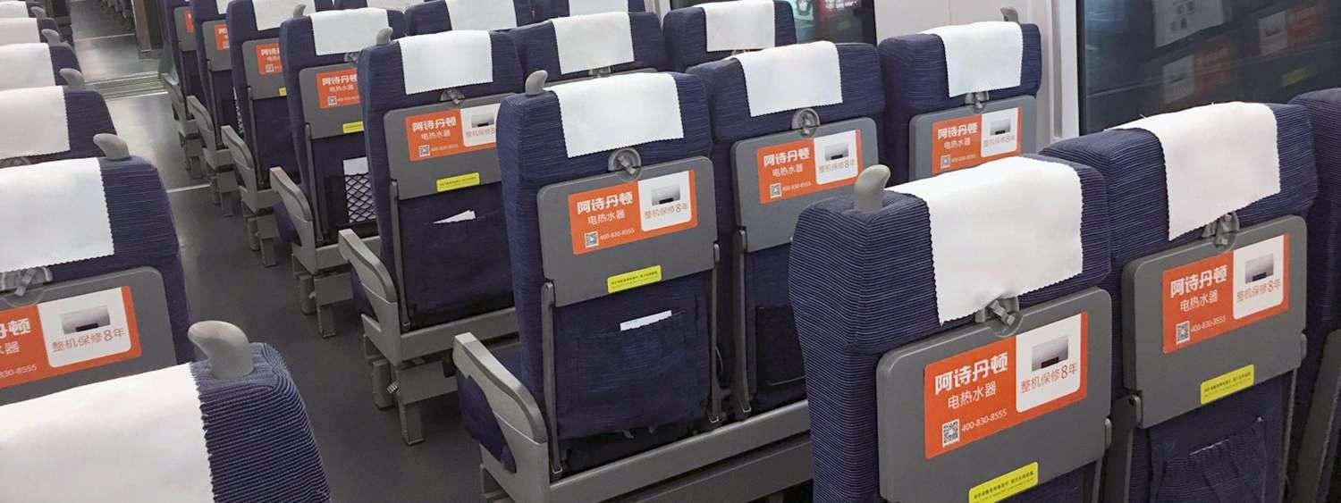 位于所有高鐵車廂內進門處等顯要位置,覆蓋全部高鐵旅客。