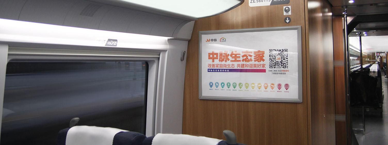 位于所有高鐵車廂內行李架下方,對稱發布,氣勢磅礴,視覺沖擊力強,無論坐、立、行,都能有絕佳的視覺效果,利于品牌整體性展示。