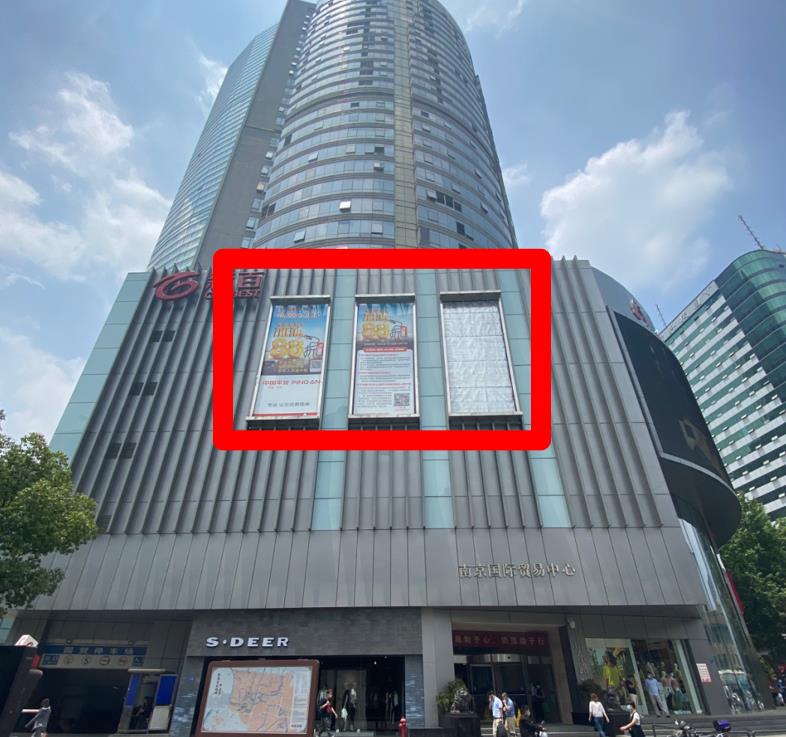 | 南京新百B座東立面墻體大牌廣告 位置:新百B座東立面墻體 形式: 戶外大牌(有照明) 數量: 3 規格:4.1m(W)X9.845m(H)=40.36㎡ 人車流量:80萬人次/日 50萬輛次/日 |