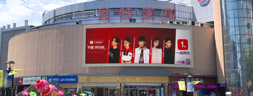 該屏位于蘇南第一商圈——蘇州觀前街核心位置,處蘇州黃金主干道南北向人民路、東西向干將路交匯,輕軌黃金干線一號線與四號線交匯,緊鄰的景德路是串聯觀前商圈與石路商圈的最便捷通道,人車流量巨大,是蘇州的網紅地標屏。