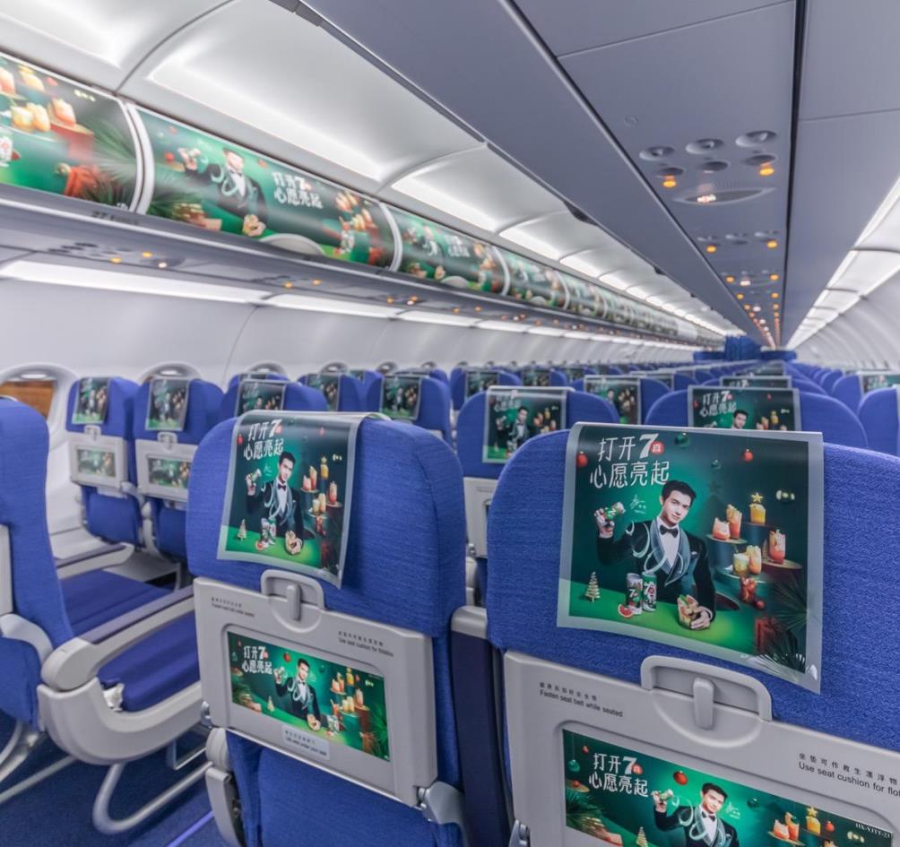 通過全方位的畫面包裹,全方位塑造品牌形象在飛行途中強化旅客對產品和品牌的印象。