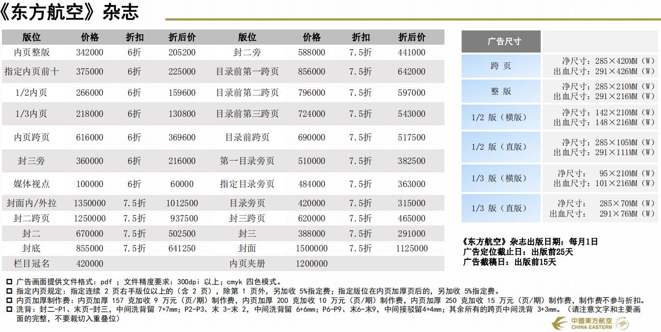 《東方航空》雜志每月1日出版,全彩色中英文月刊,印刷精美;