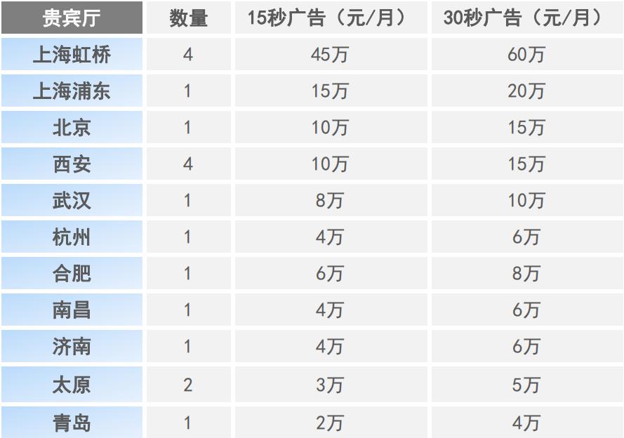 通過VIP貴賓廳電視屏幕進行廣告發布,每臺電視可循環播放約54次/天,精準定位高端人群,平均廣告停留時間為28分鐘。
