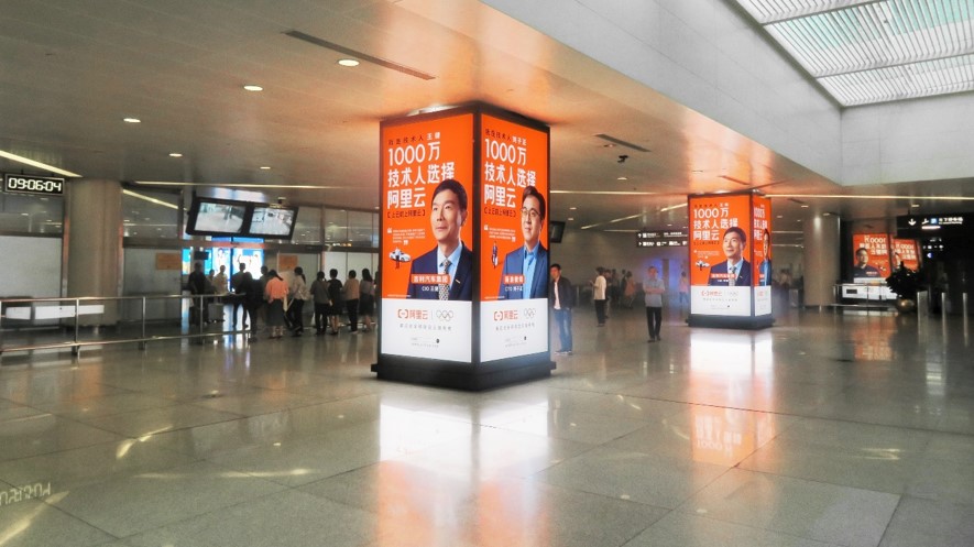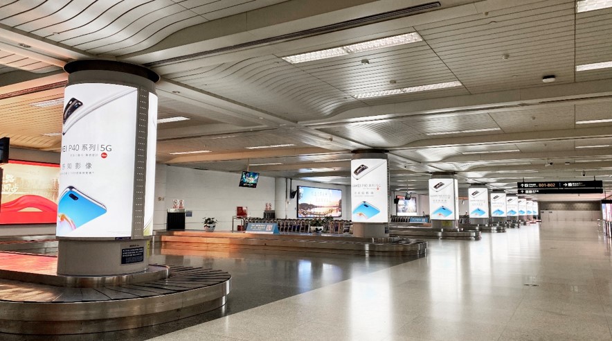 杭州機(jī)場(chǎng)包柱燈箱廣告-T1、T2及T3出發(fā)大門口右側(cè)包柱燈箱廣告
