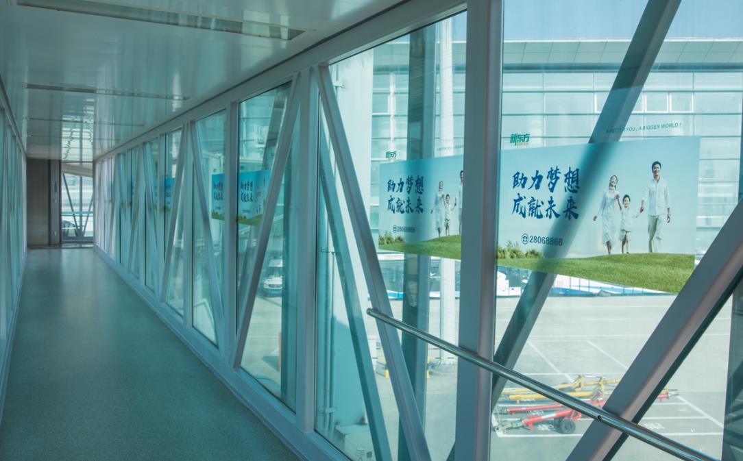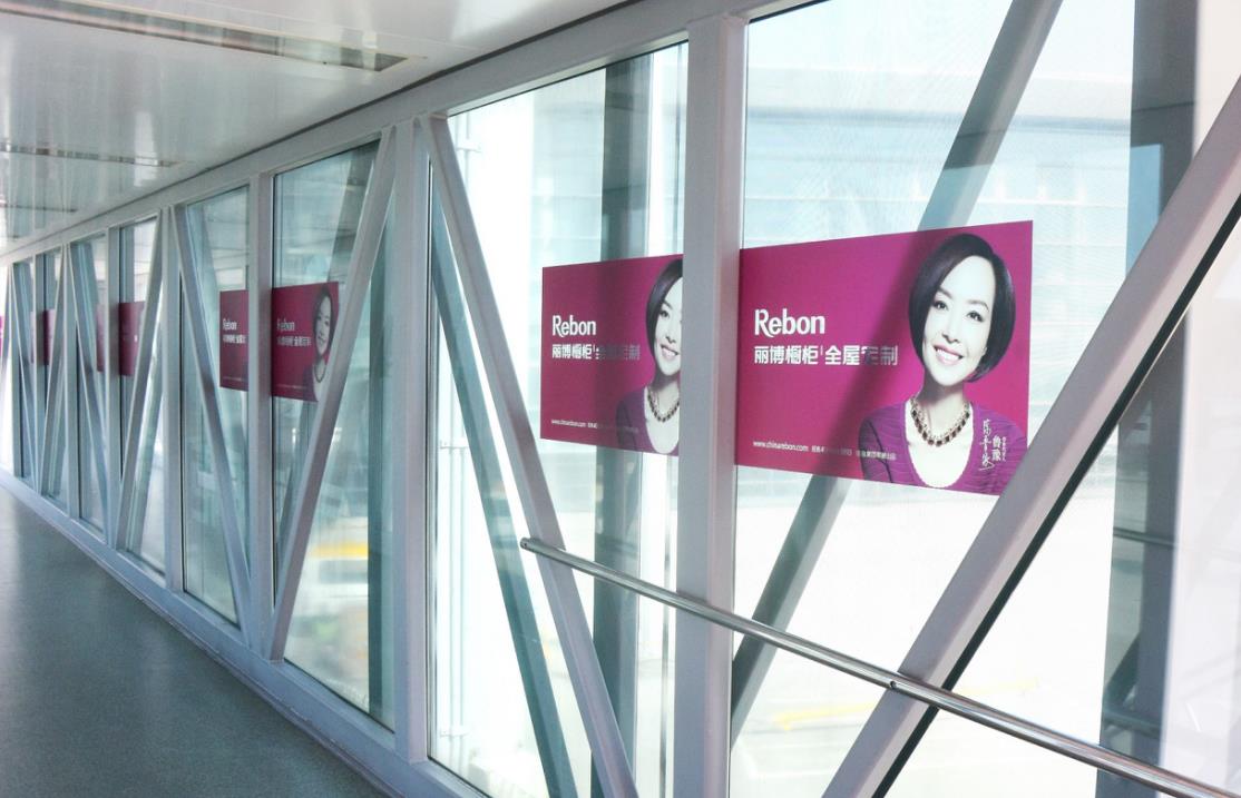 杭州機(jī)場(chǎng)航站樓貼膜廣告-T2航站樓廊橋內(nèi)貼膜廣告