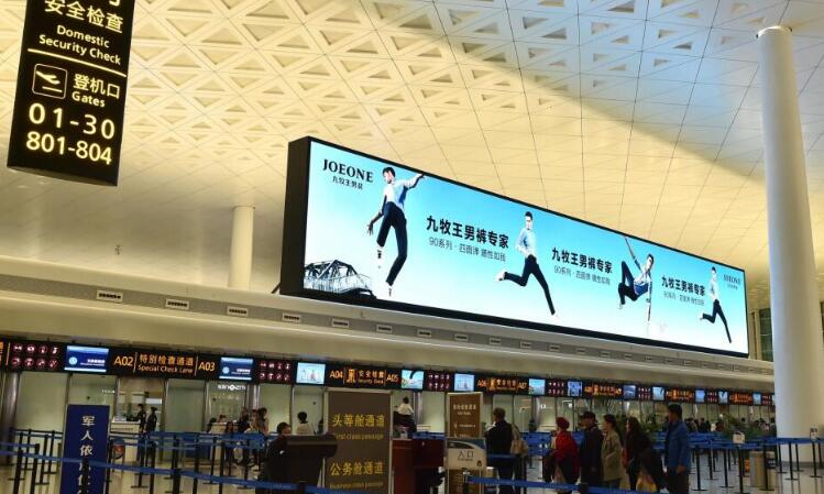 國(guó)內(nèi)安檢口巨型屏幕,于機(jī)場(chǎng)內(nèi)最具價(jià)值的國(guó)內(nèi)安檢口正上方