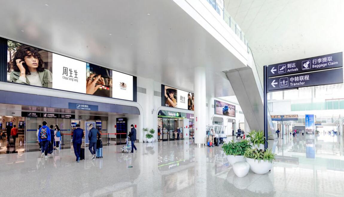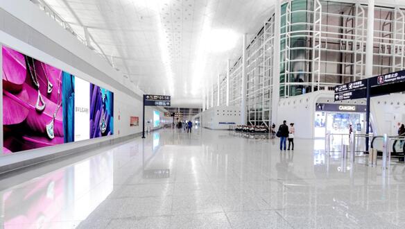 國內安檢口巨型屏幕,于機場內最具價值的國內安檢口正上方