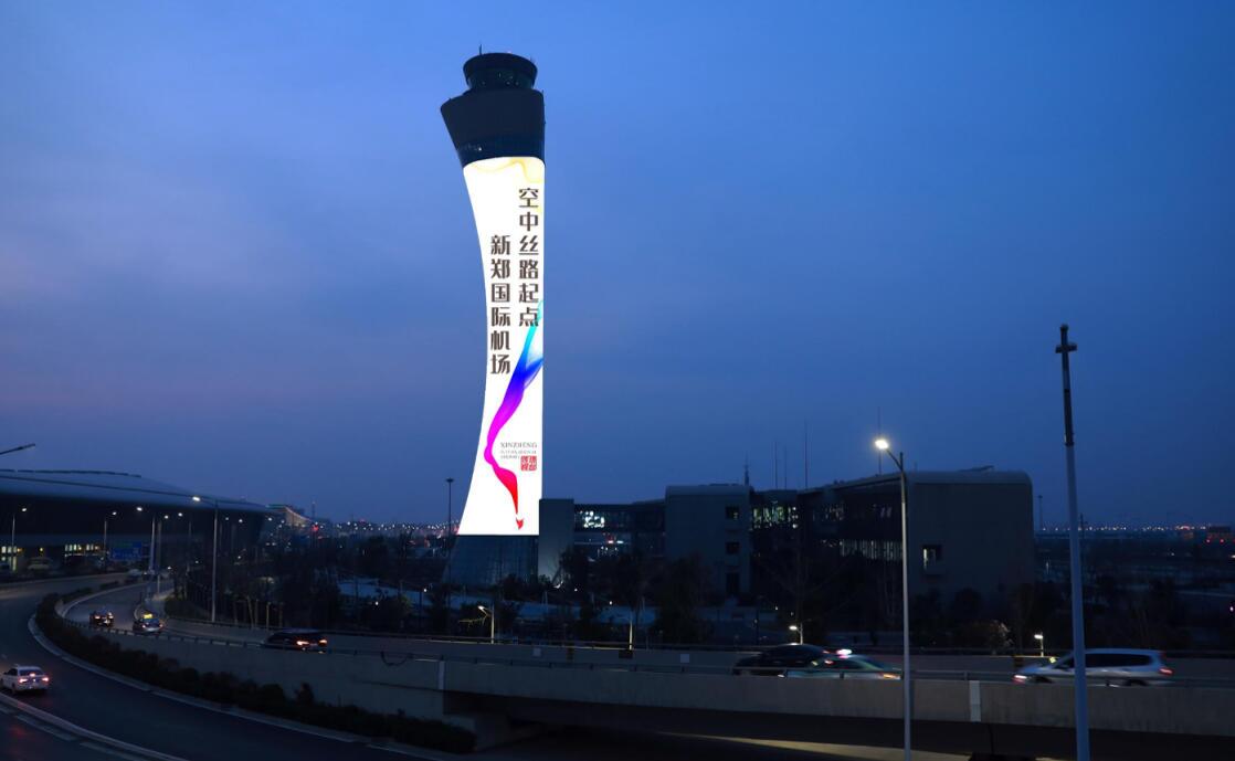 用科技之光點亮城市之夜,作為機場地標塔臺,占據機場外制高點,巨幕展示,形成強勢視覺效果。
