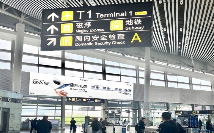 可同時(shí)覆蓋 100%磁浮地鐵入機(jī)場(chǎng)旅客。單塊媒體尺寸規(guī)格大,架設(shè)位置高,視野穿透力強(qiáng)。