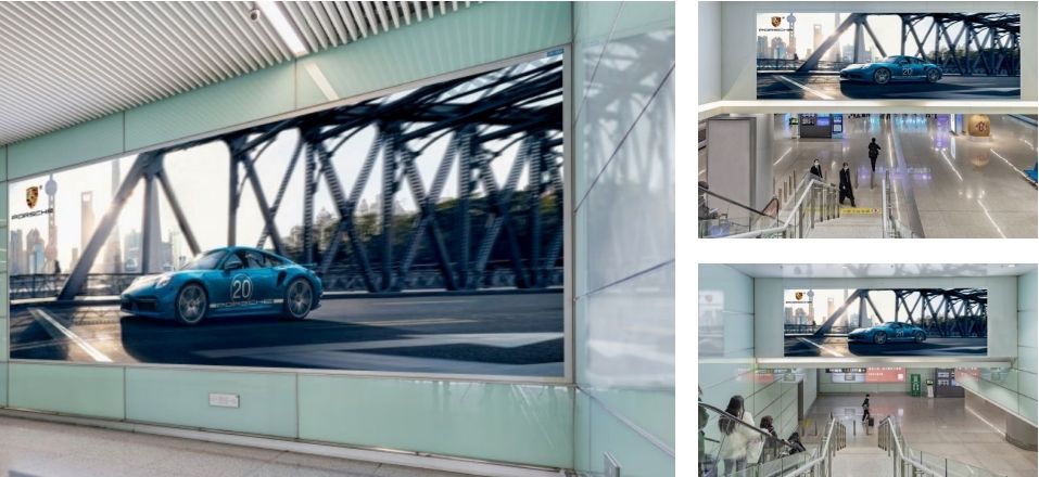 媒體面對(duì)磁浮地鐵通道出口處,全方位覆蓋磁浮到達(dá)及離開機(jī)場(chǎng)旅客。 不遠(yuǎn)處為旅客休息區(qū),具有受眾距離近,具有醒目、全面、沖擊力強(qiáng)的展示特點(diǎn), 受眾人群廣,宣傳效果佳。