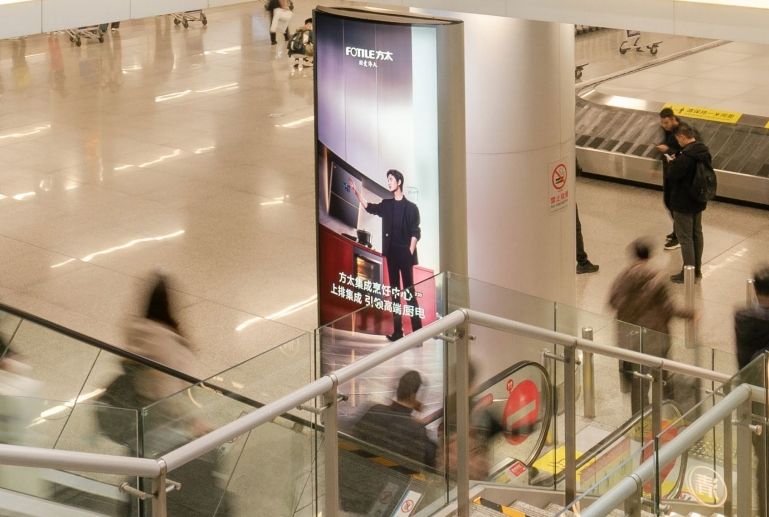 媒體位于 T1 航站樓到達(dá)廳前廳,覆蓋全 T1 出站客流,燈箱自帶 光,直面出口客流,實(shí)現(xiàn)目光聚焦,媒體環(huán)境干凈干擾少,畫面 視覺沖擊力強(qiáng)。