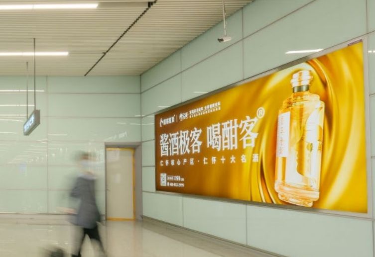 長(zhǎng)沙黃花機(jī)場(chǎng)廣告 –T2 出發(fā)大廳貴賓廳檢查 A 口磁浮地鐵連廊頂部燈箱廣告
