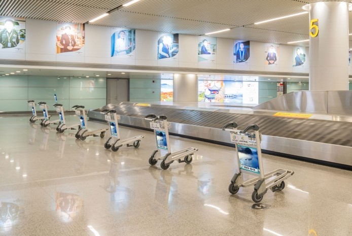 媒體位于 T1 航站樓到達(dá)層行李廳外排,燈箱自帶高光。周邊環(huán) 境寬闊、明亮,媒體環(huán)境干凈干擾少,畫面視覺沖擊力強(qiáng)。