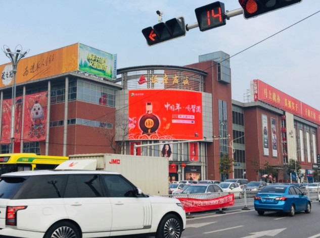 大屏位于濟寧太白中路龍貴購物中心樓體,濟寧龍貴購物中心是目前為止濟寧唯一一家擁有輕奢品牌的商場。
