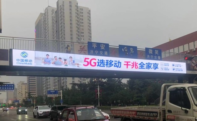濟寧金宇路濟寧學院門口跨街天橋led大屏廣告