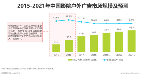 根據(jù)艾瑞咨詢數(shù)據(jù)顯示,2018年中國(guó)影院戶外廣告市場(chǎng)規(guī)模達(dá)52.8億元,同比增長(zhǎng)率為10.2%。中國(guó)影院戶外廣告市場(chǎng)將逐漸進(jìn)入增長(zhǎng)放緩的“低行期”。隨著院線的收縮與整合,以及影院建設(shè)的結(jié)構(gòu)調(diào)整,未來(lái)一線城市頭部影院銀幕資源將愈發(fā)稀缺,影院戶外媒體公司競(jìng)爭(zhēng)壓力變大。一方面,頭部影院資源將成為戶外媒體公司的核心競(jìng)爭(zhēng)壁壘,另一方面,四五線城市將為影院廣告市場(chǎng)提供更多新的發(fā)展機(jī)會(huì)。