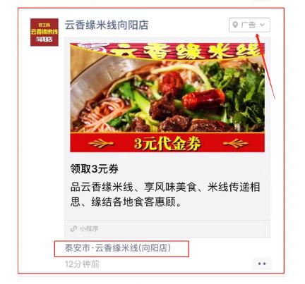 朋友圈圖文廣告由五或六個部分的內(nèi)容構(gòu)成,包含廣告主頭像&名稱、外層文案、外層圖片、文字鏈、用戶社交互動等, 本地推廣圖文廣告還包括門店標(biāo)。