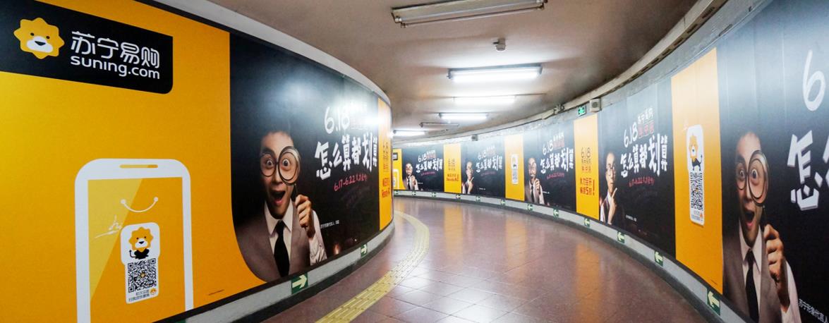 大型品牌區域墻貼位于地鐵通道走廊,曝光率極大,極據震撼力、影響力、沖擊力!大型企業品牌曝光極線上二次傳播的必備武器。價格居高