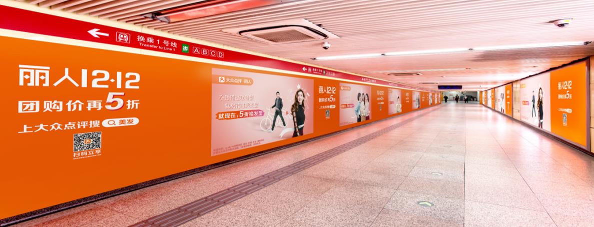 媒體位置:5號(hào)線東單南換乘通道北墻豪華燈箱10塊+南墻墻貼