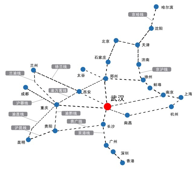 武漢有九省通衢之稱,高鐵網絡連接大半中國,是中國鐵路系統中重要的大型中轉站以及內河重要港口,覆蓋全國主要發達省市區和湖北省內60%的人口及80%的經濟總量。