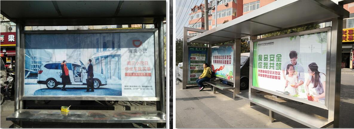 B類候車亭 指不銹鋼材質雙廣告位 規格為0.91x1.65m或1x1.75m等 分布范圍布及整個昌平地區 |