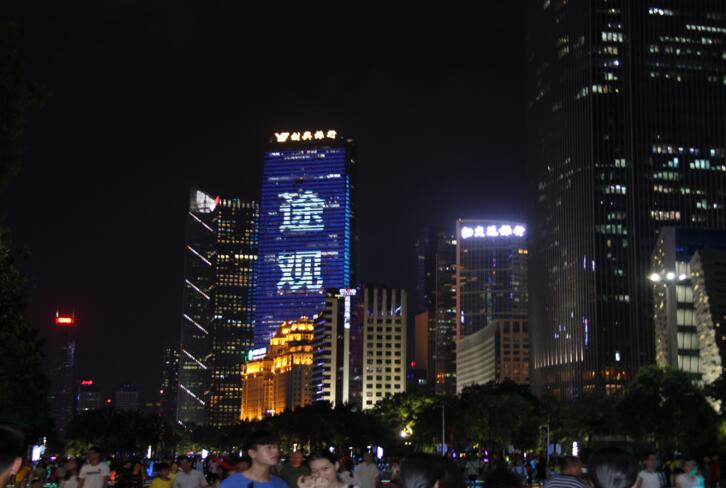 城市地標燈光秀廣告之廣州地標廣告,廣州越秀金融大廈燈光秀廣告
