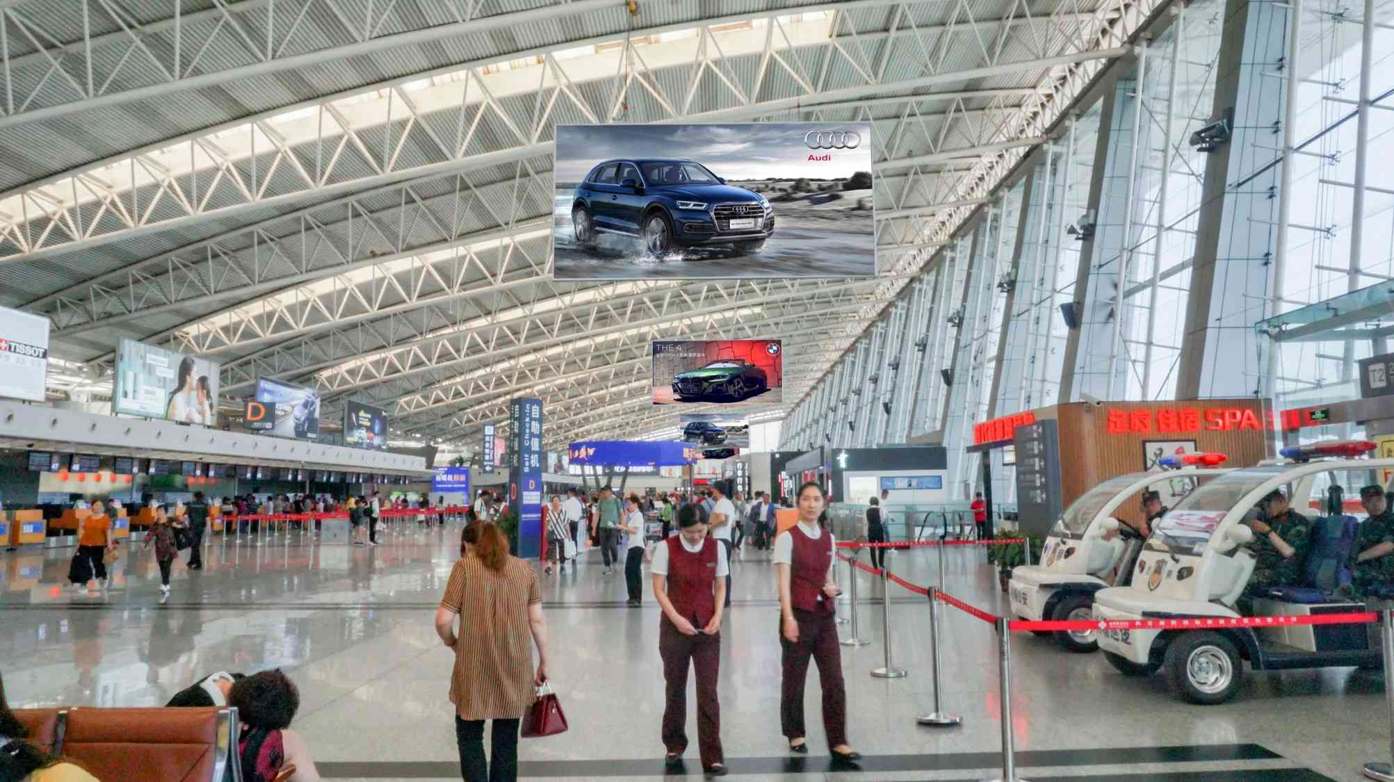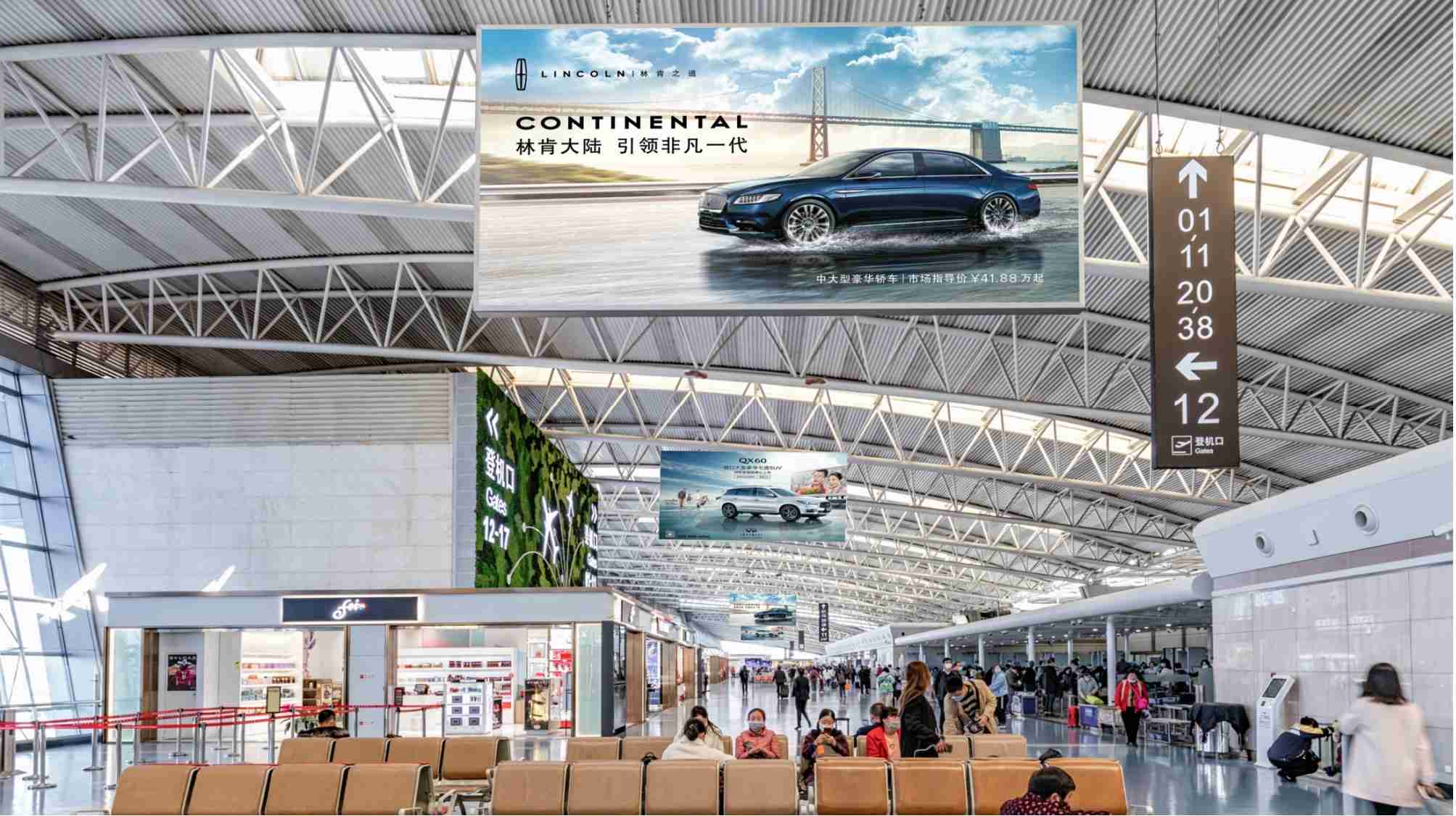 西安咸陽機場廣告,咸陽機場T2航站樓國內出發(fā)懸掛燈箱廣告
