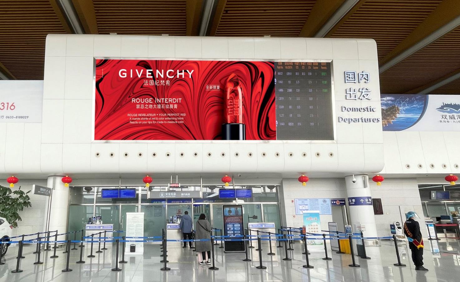 日照山字河機(jī)場廣告-國內(nèi)出發(fā)安檢正上方led廣告