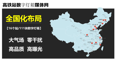 18家鐵路局,24個重點省份,30%行業占比,24個重點城市,134樞紐高鐵站,3845優質燈箱媒體。