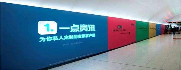 值得一提的是國貿站,它是北京商務中心區的核心地段,中國國際貿易中心位于其西北側。其中最為顯著的墻貼廣告為品牌提供了超大創意空間,盡顯品牌氣勢及品牌實力,是提升品牌美譽度、品牌形象塑造的較佳媒介選擇。同時,媒體靠近銷售終端,也是是新品上市最佳的轟動型與爆破型媒體。