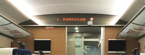 位于所有高鐵車廂內(nèi)行李架下方,對稱發(fā)布,氣勢磅礴,視覺沖擊力強,無論坐、立、行,都能有絕佳的視覺效果,利于品牌整體性展示。