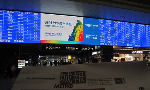 媒體優勢:該媒體位于一樓候車大廳LED車次顯示屏兩側,媒體位置極佳,是所有進站乘車候車旅客的必看媒體,廣告的強制接受性高,旅客停留時間較長,廣告內容記憶深刻,廣告到達率高。