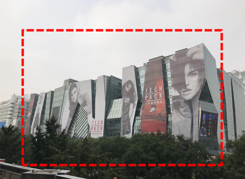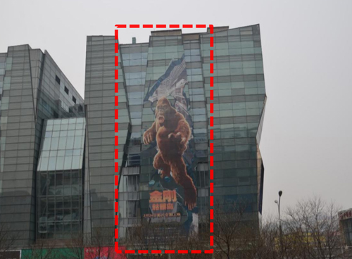 創意方案四:整面(朝東)+東南;廣告總面積: 2800m²+900m²=3700m2(圖片為改造前的實景照片) 發布費用:(7天:660萬)  制作費有+上下刊費用:110萬