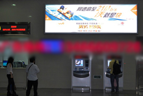 候車大廳 站廳燈箱 1塊 2.655(寬)*1.555(高)=4.12㎡ RMB 5.8萬元/月/塊