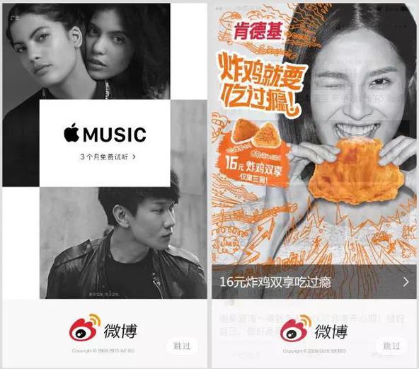(1)開屏廣告。開屏廣告在很多的APP之中,都會有此類的廣告形式展現,在打開APP之后會出現一個全屏的廣告,點擊廣告之后,會出現跳轉等一系列活動。開屏廣告具有一定的的針對性,能夠確定相關的目標受眾,同時具有強制曝光,讓每一個打開微博的受眾,都能夠必須看到整個廣告,才能進入界面。