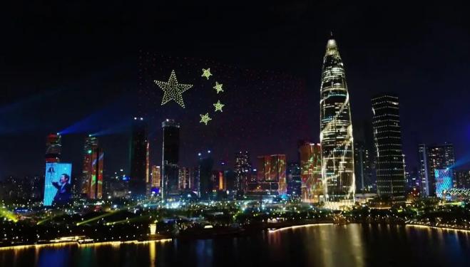 當(dāng)晚,826架無人機組成的編隊騰空而起,依次拼出“時間就是金錢,效率就是生命”“空談?wù)`國,實干興邦”等文字;隨后,“大鵬展翅”“深圳灣大橋”“女媧補天”等一一呈現(xiàn)。